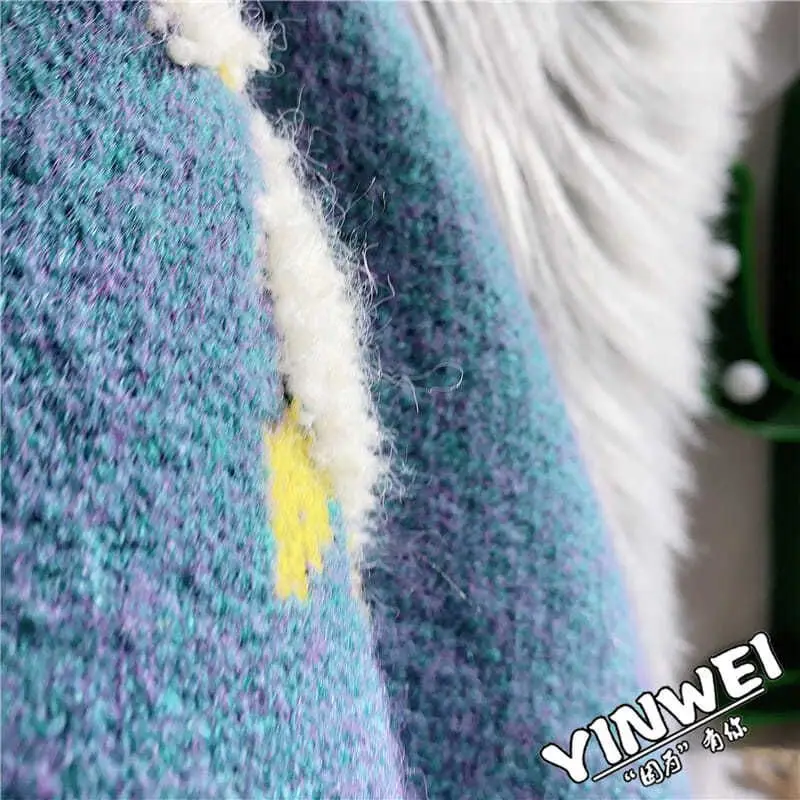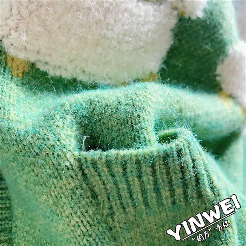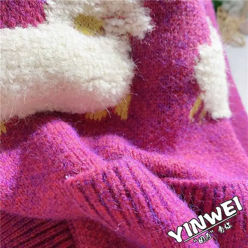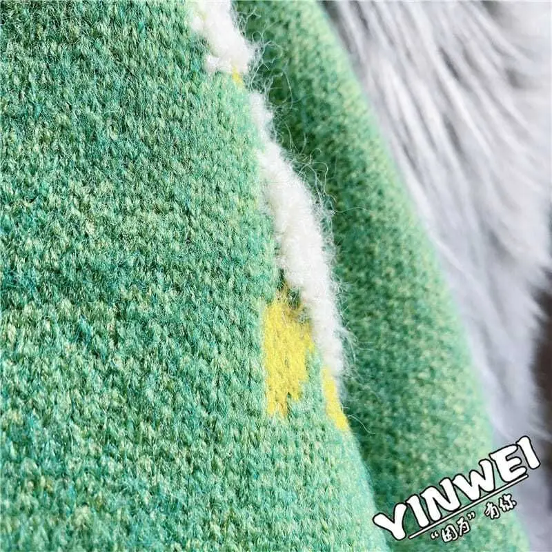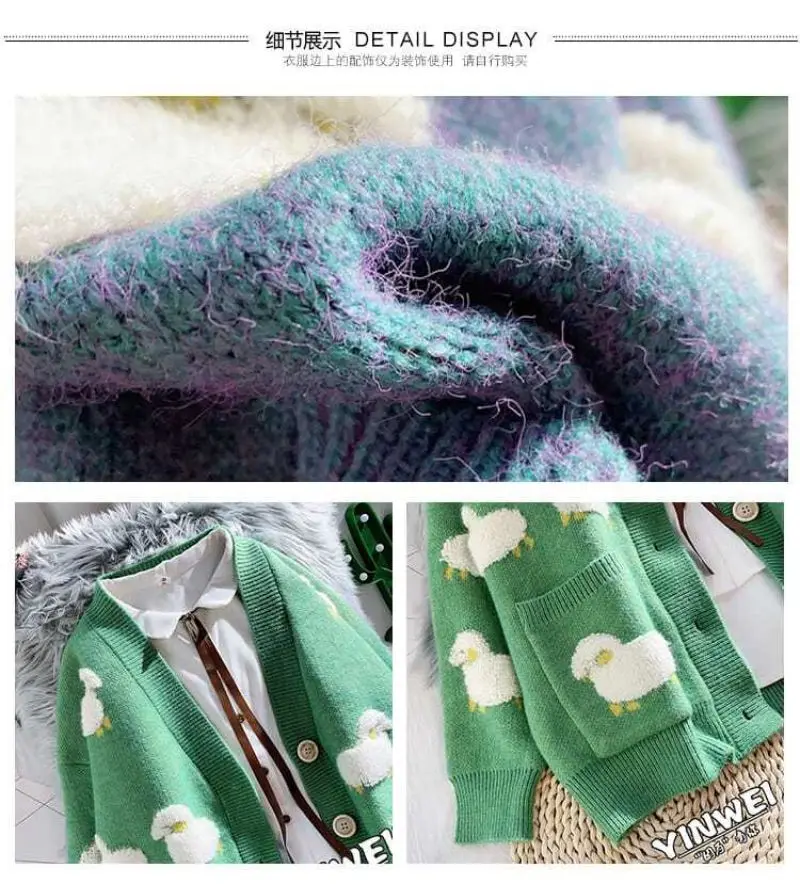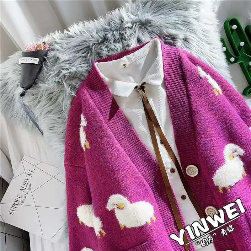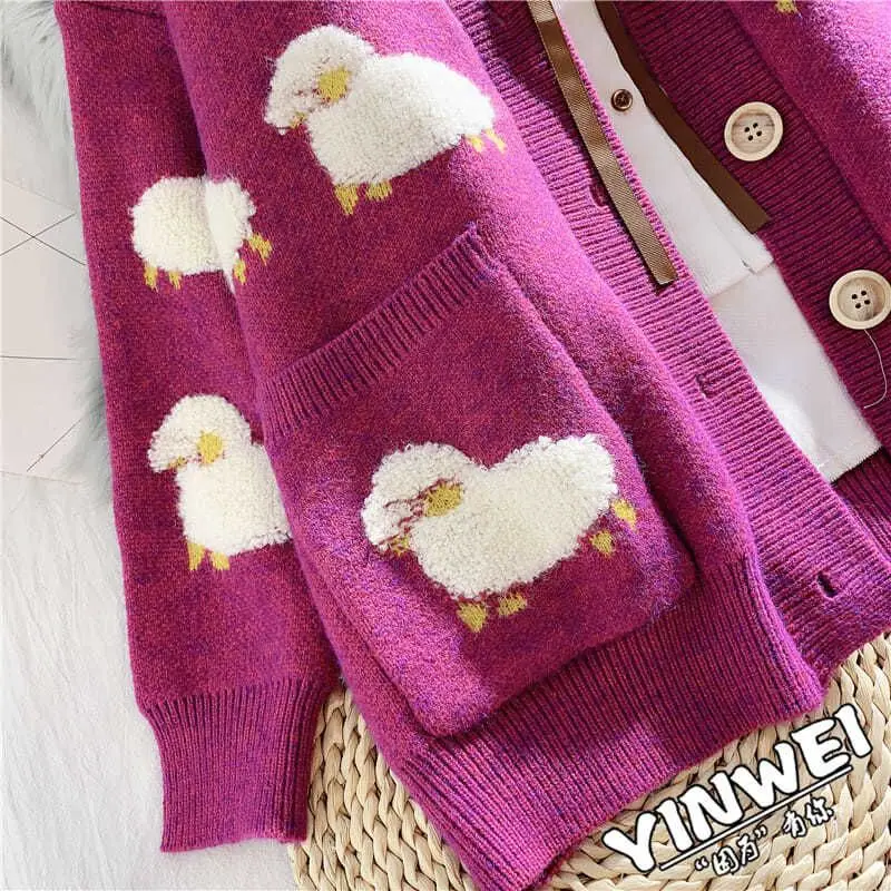 Sheep Cartoon V-Neck Long Sleeve Loose Knitted Sweater Women's Cardigan Korean Fashion Autumn Winter Thick Cardigan For Women