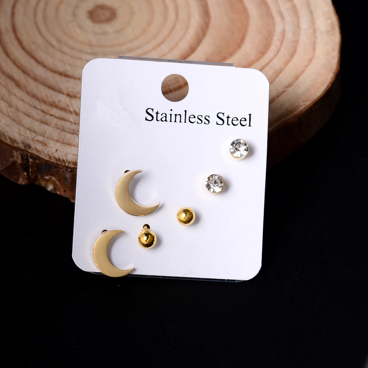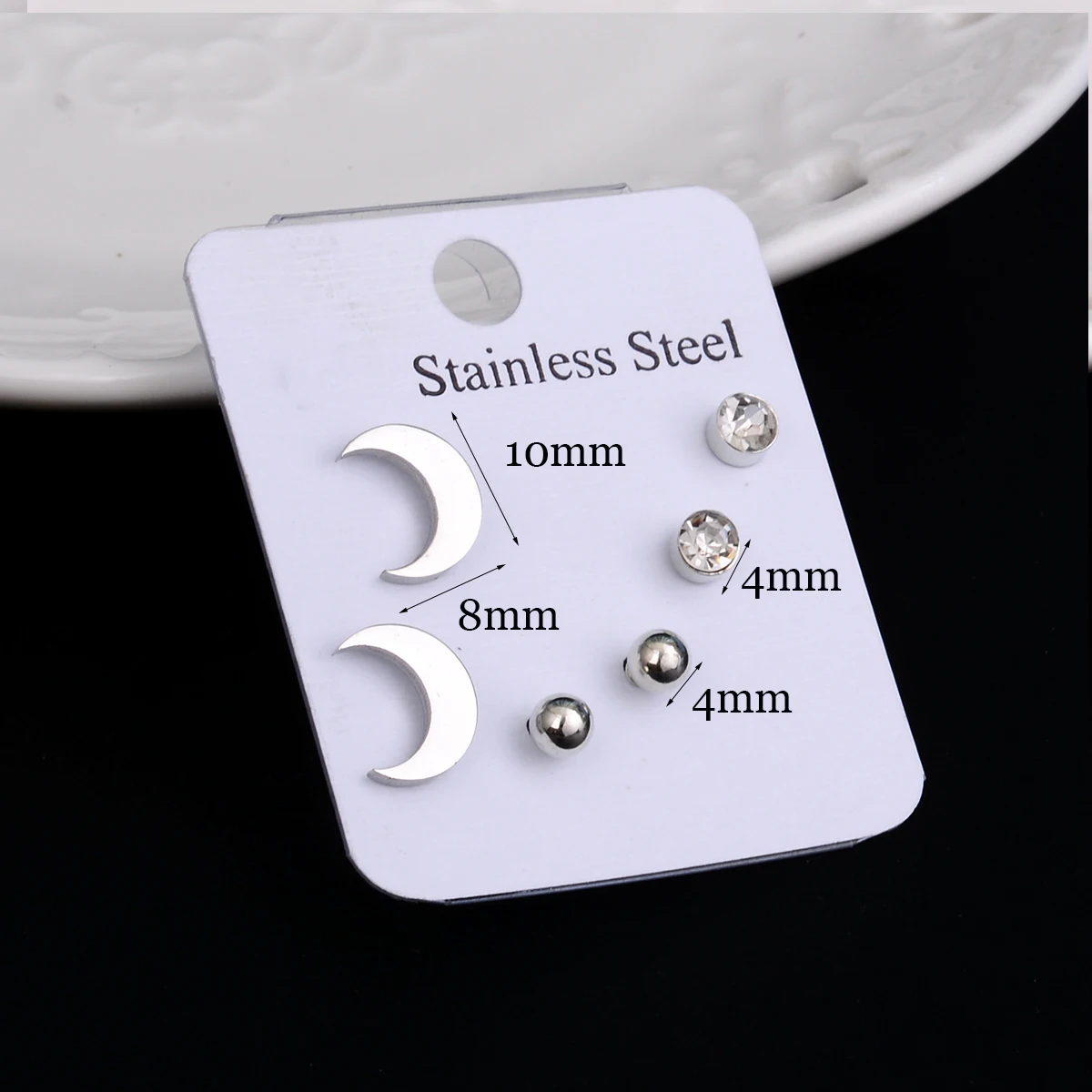 Stainless Steel Earrings Small Cute Butterfly Star Moon Heart Stud Earrings Set Punk Piercing Earing Women's Minimalist Jewelry