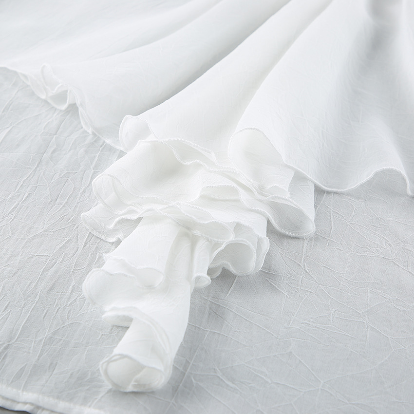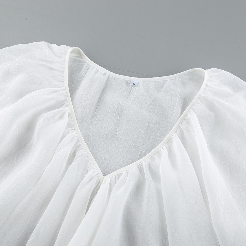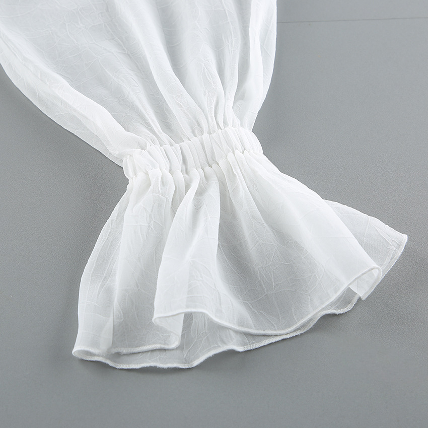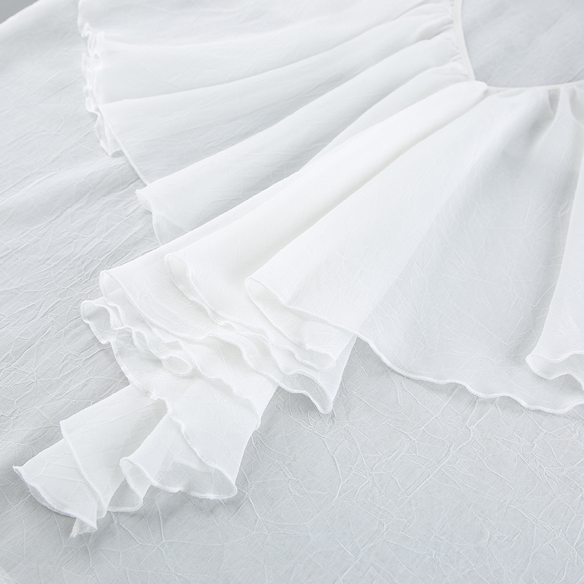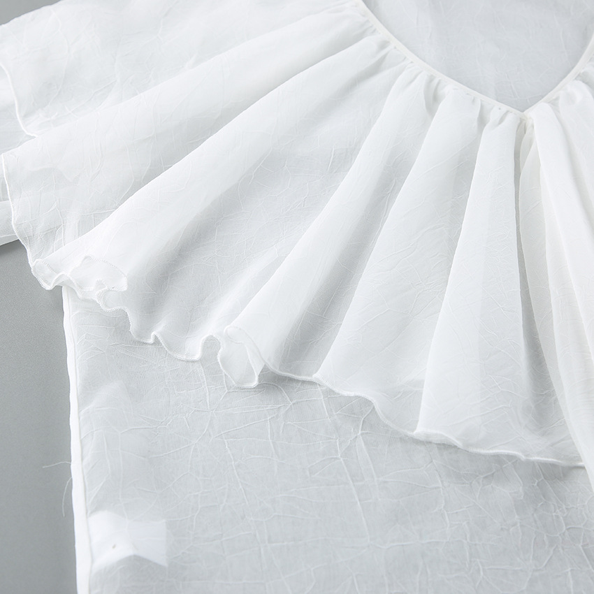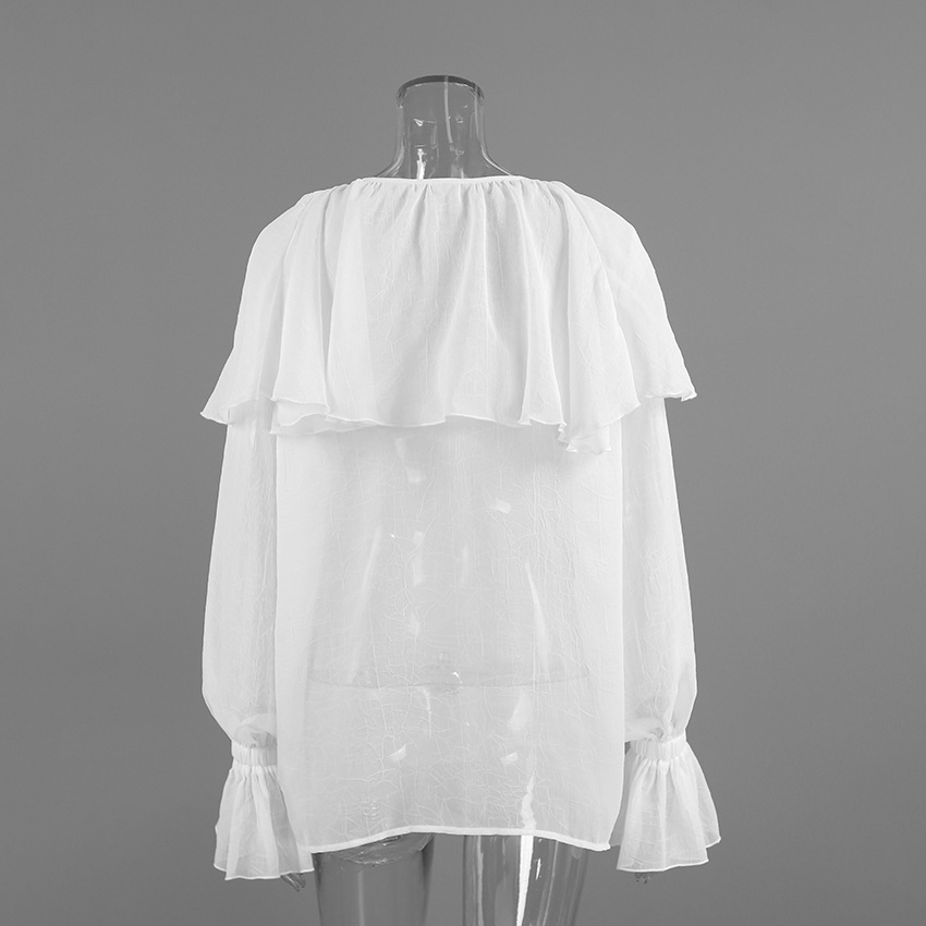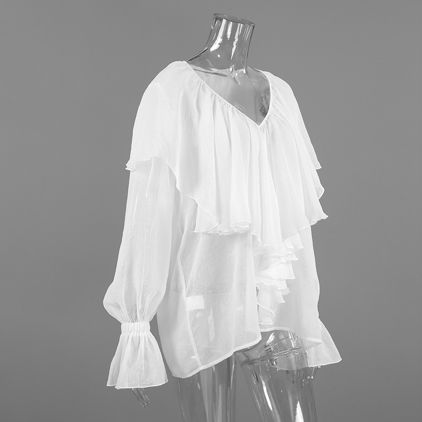 Autumn Texture V neck Flounce Flare Sleeve Blouse Women All Match White Chiffon Shirt