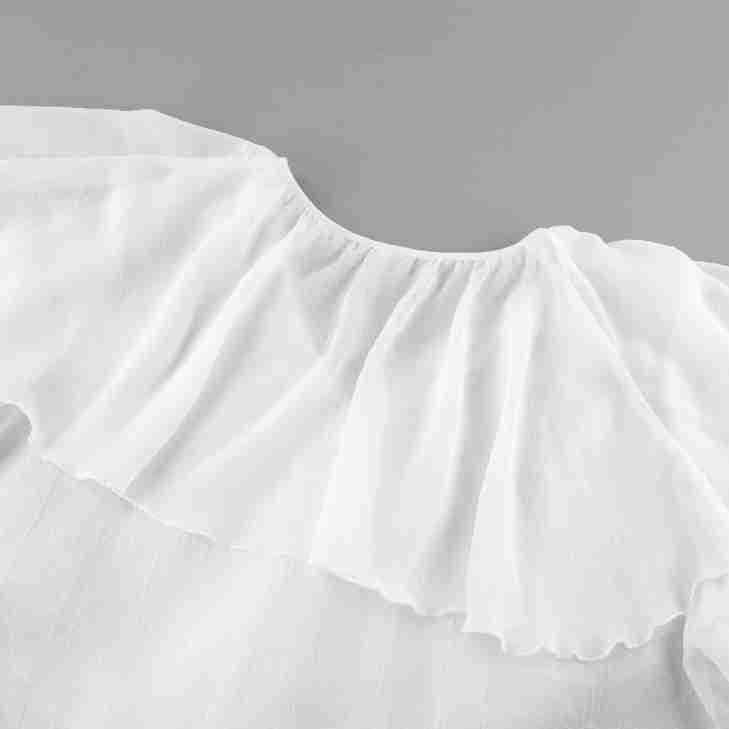 Autumn Texture V neck Flounce Flare Sleeve Blouse Women All Match White Chiffon Shirt Bella Mia