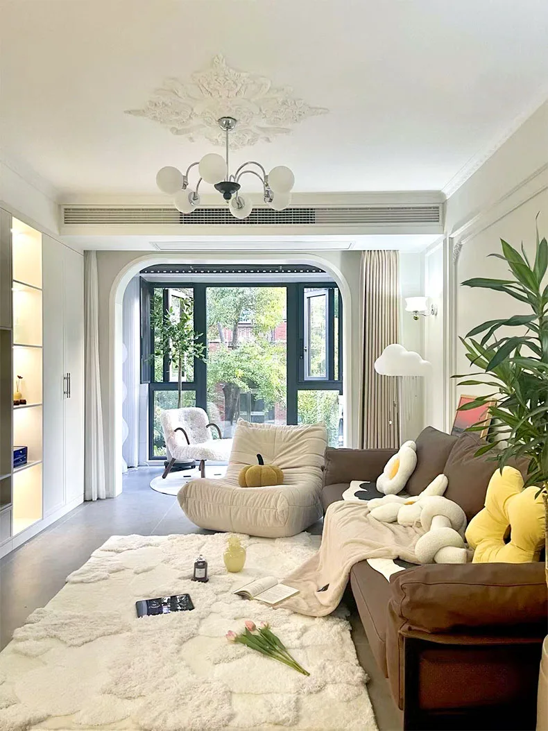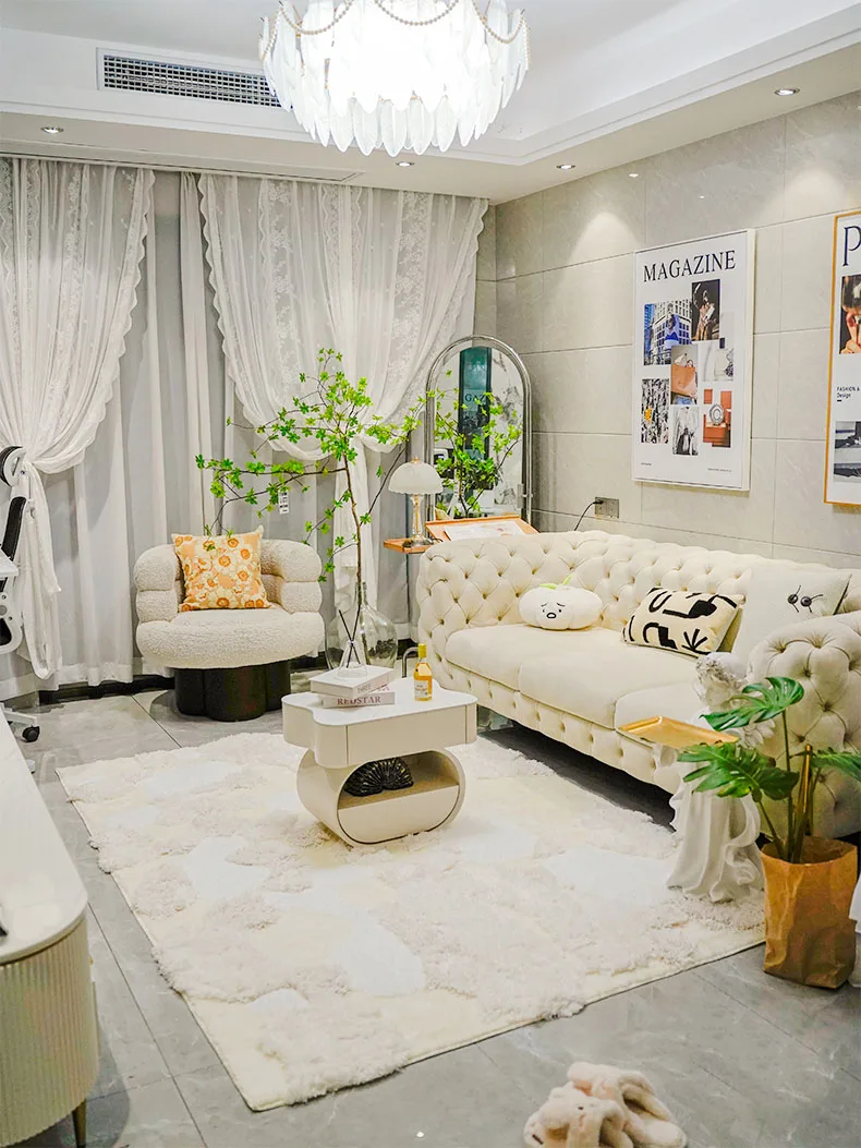 Because the volume limit is very strict, it can only be folded packed, it has the creases, but the creases are very easy to recover, spread it under the coffee table for a while, walk around, and also use heavy things press on it, the carpet will be flat