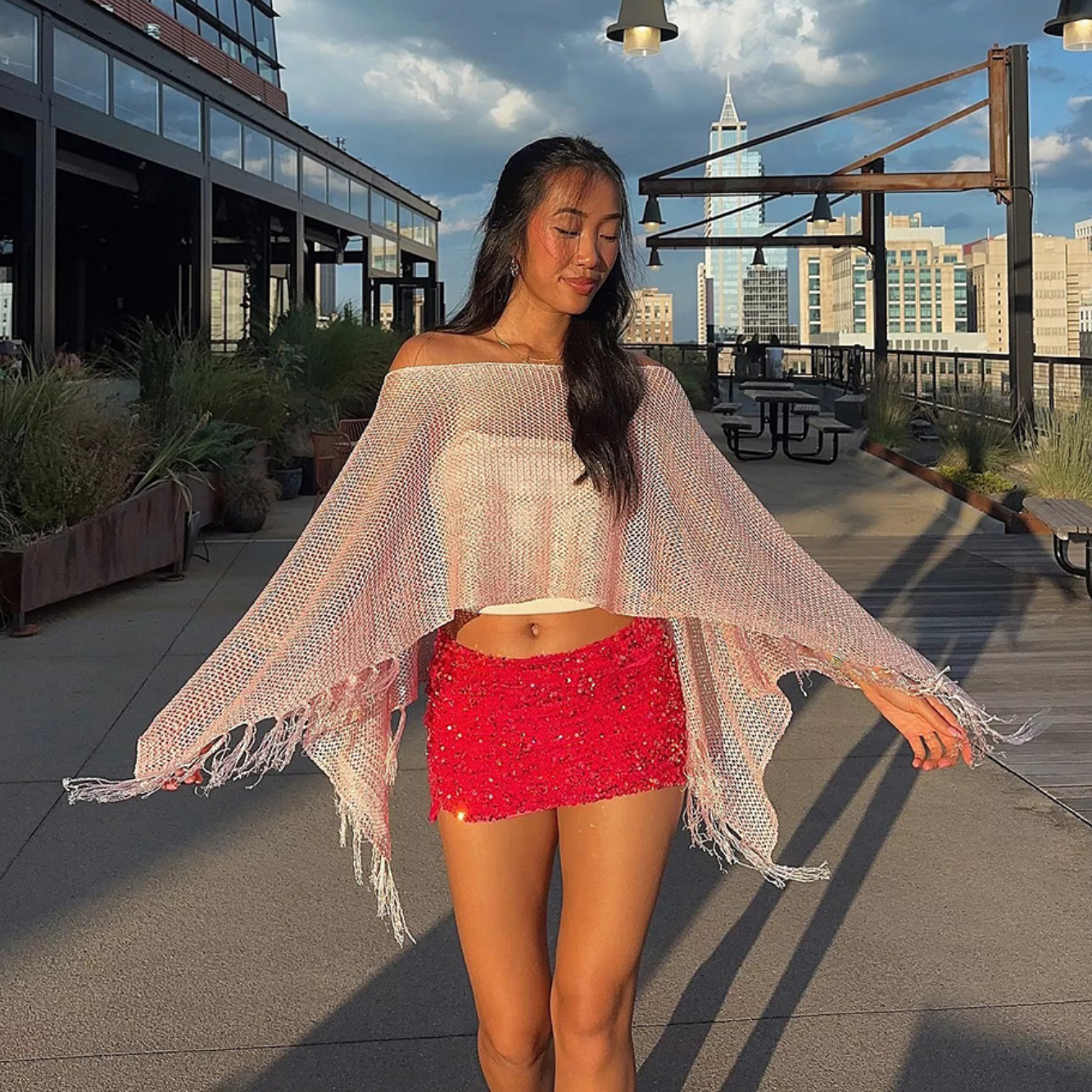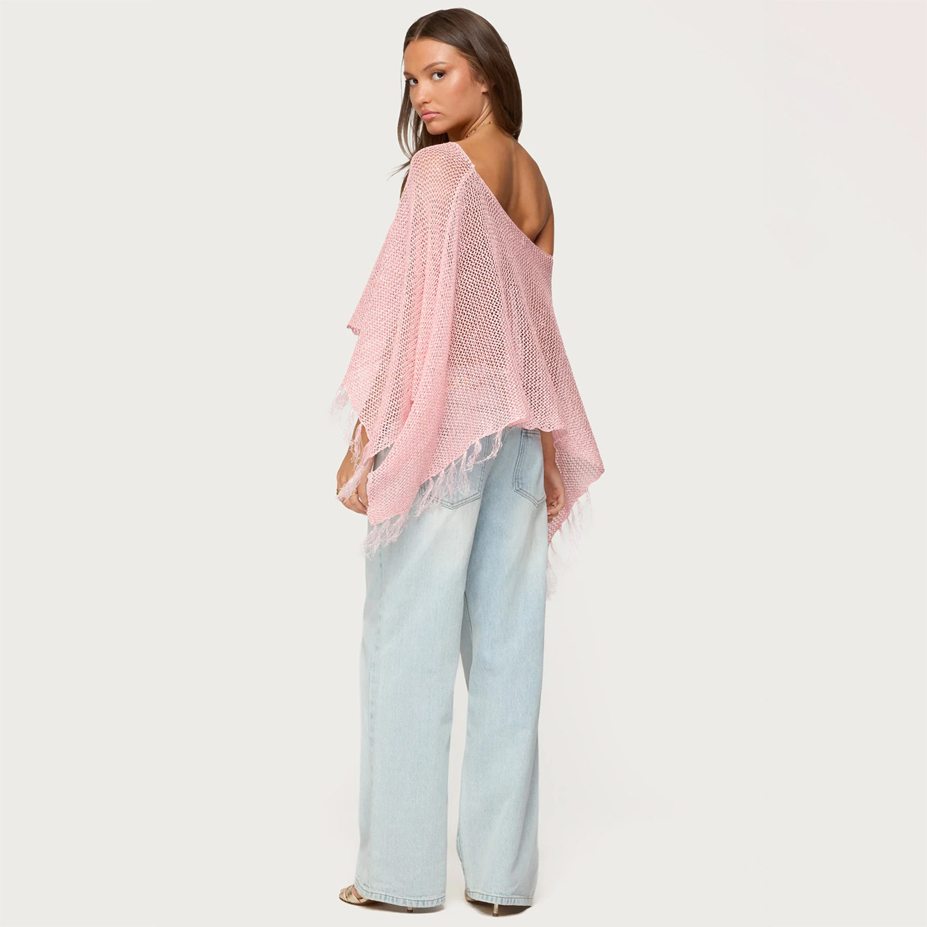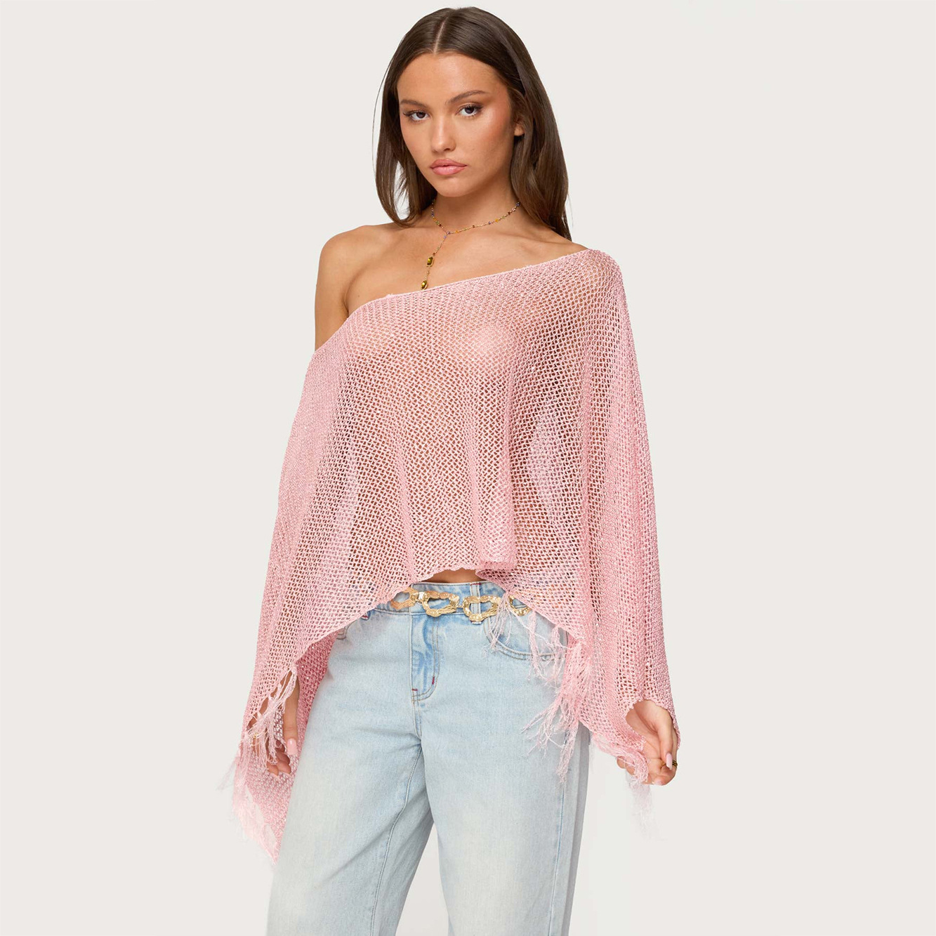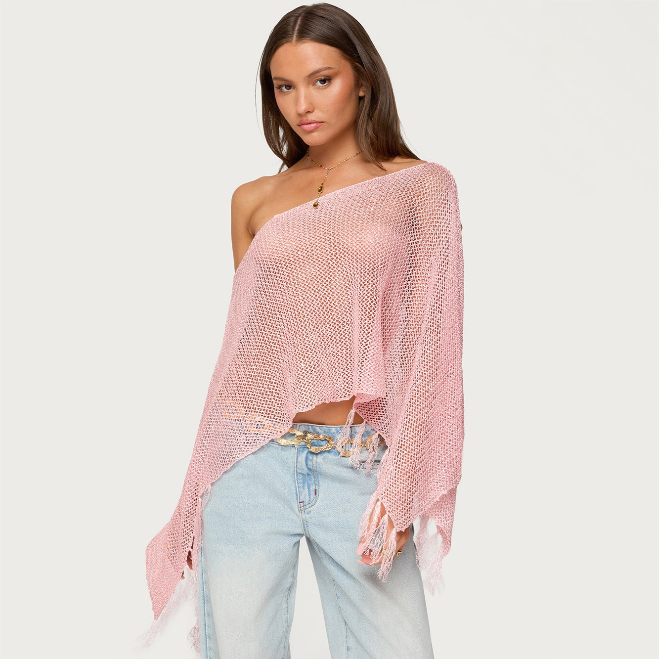 Summer Sexy Hollow Out Cutout out Sexy Diagonal Collar Inverness Irregular Asymmetric Design Knitted Blouse
