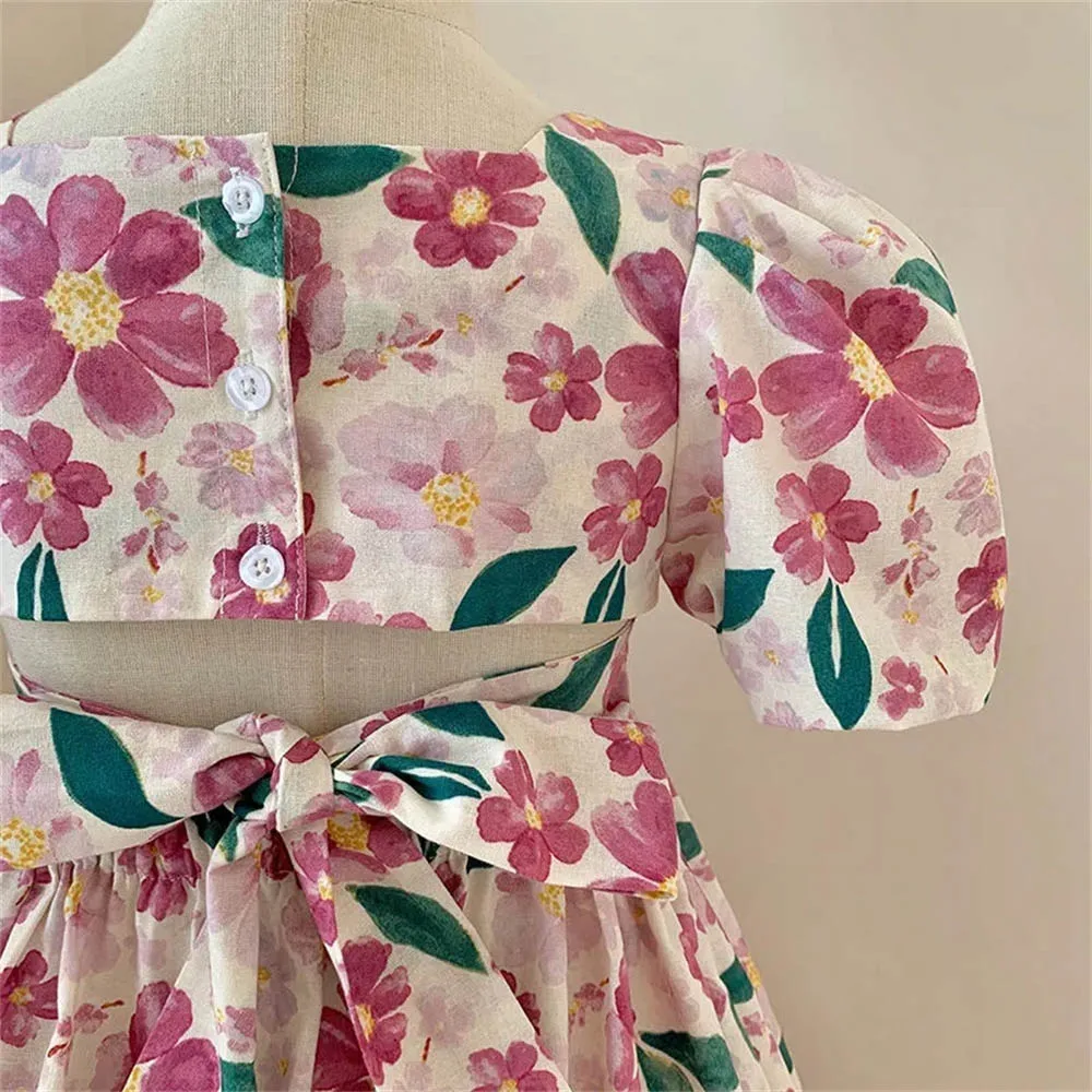 Bear Leader Girls Bubble Sleeve Princess Dress 2023 Summer New Childrens Wear Girl Baby Retro Floral Dress Cute Princess Dress