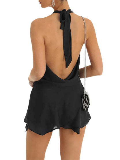 Cassandra Draped Backless Halter Mini Dress