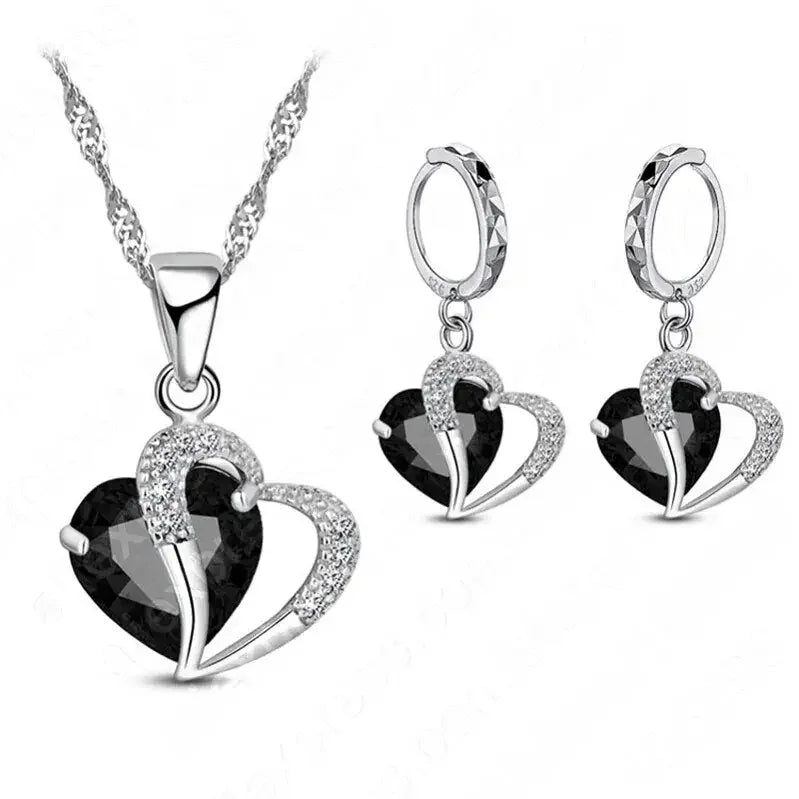 Luxury Women 925 Sterling Silver Cubic Zircon Necklace Pendant Earrings Sets Cartilage Piercing Jewelry Wedding Heart Design