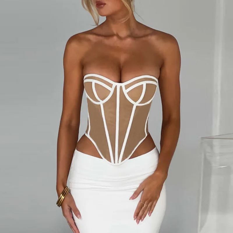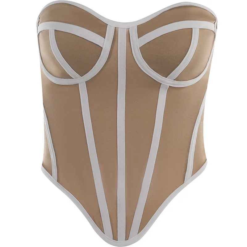 Sexy Slim Line Patchwork Sleeveless Corset Tops Women Backless Slight Stretch Summer 2023 Strapless Clothes Female Club Wear