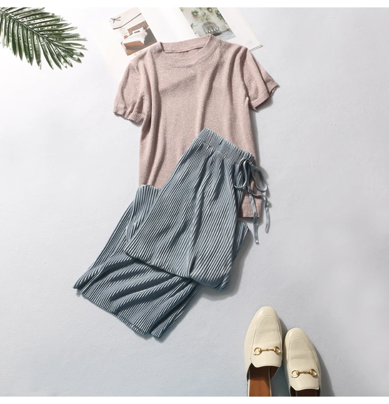 Summer Wide Leg Pants For Women Casual Elastic High Waist 2020 New Fashion Loose Long Pants Pleated Pant Trousers Femme
