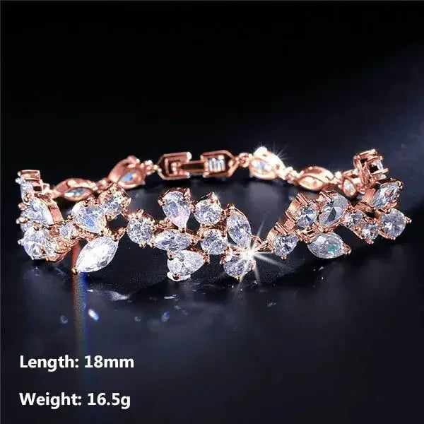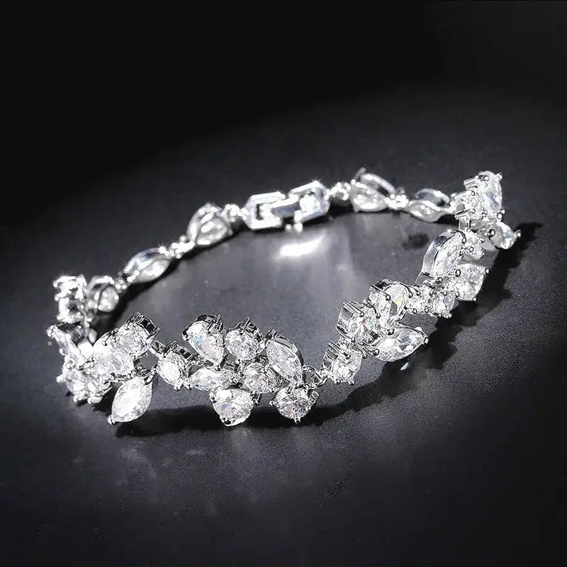 Uilz Luxury Leaf Shaped Bracelet White Gold Color AAA Cubic Zirconia Bracelets Gift for Women Prom Evening Party Jewelry