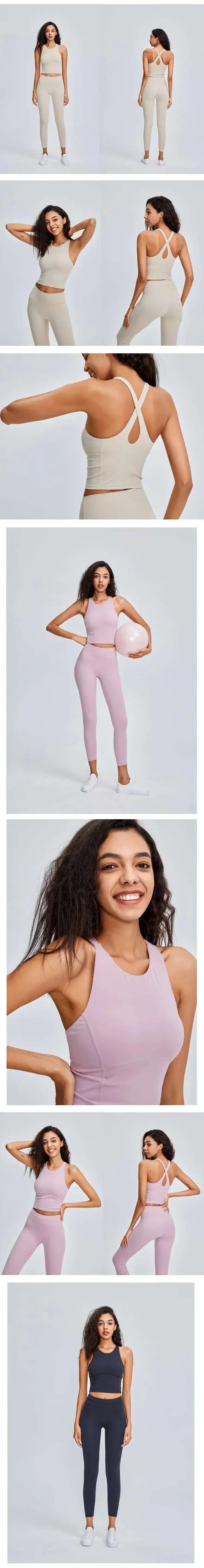 Women Shock Proof Running Fitness Crop Top Seamless Top Padded Workout Yoga Tanks Comfy Cross Back Wide Strap