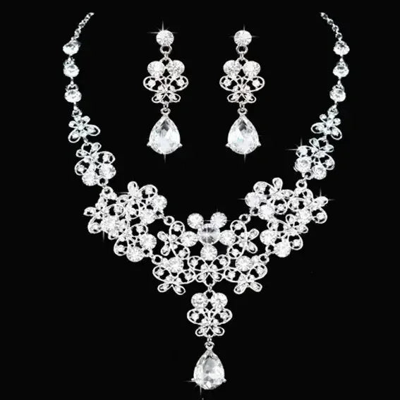 Fashion Crystal Wedding Bridal Jewelry Sets Tiara Crown Earring Necklace Bride Women Pageant Prom Jewelry Set Hair Ornaments