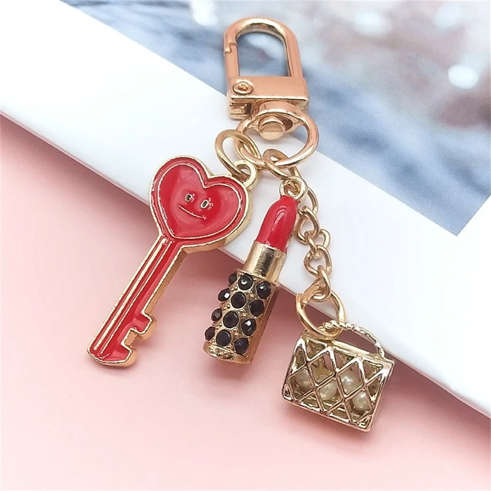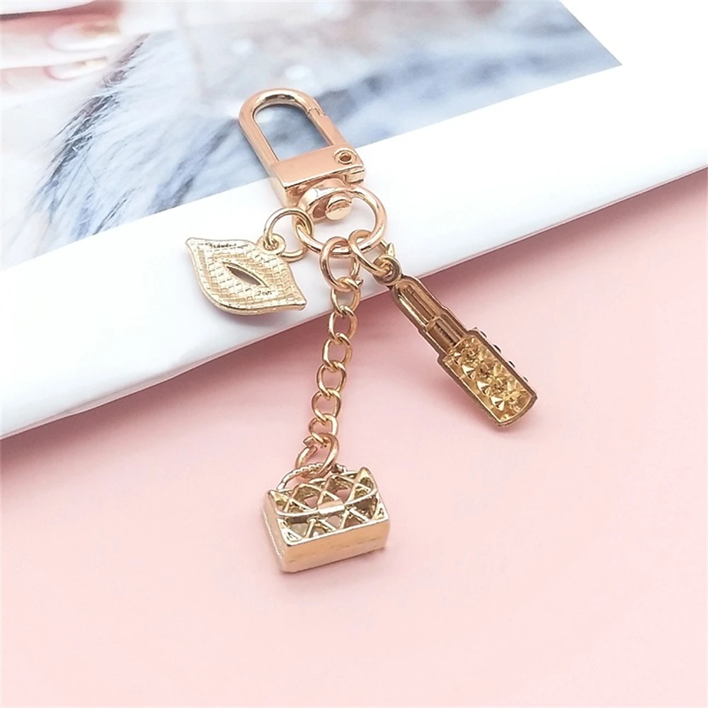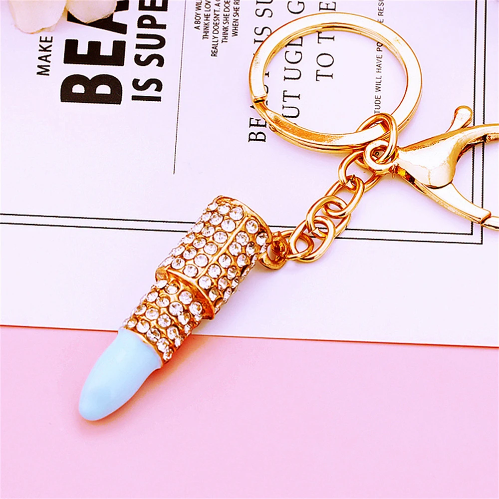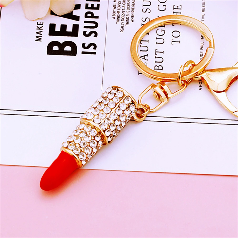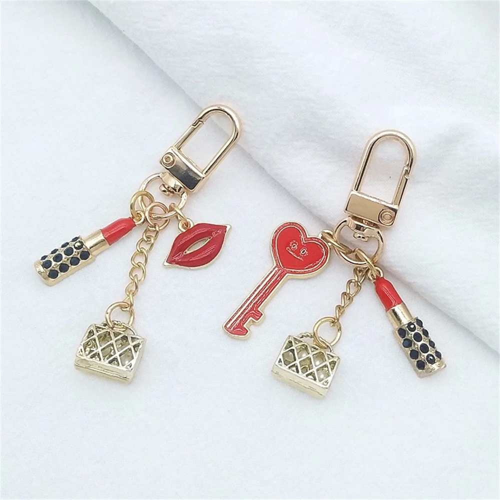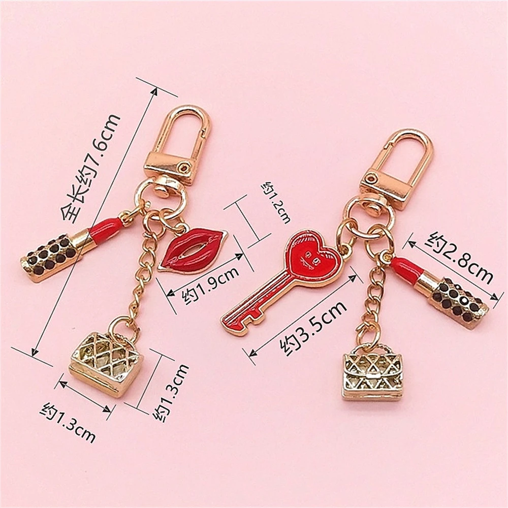 New Lipstick Lips Keychain with Black Rhinestones Key Ring Delicate Metal Pendant Charms for Women Girl Bag Car Accessories